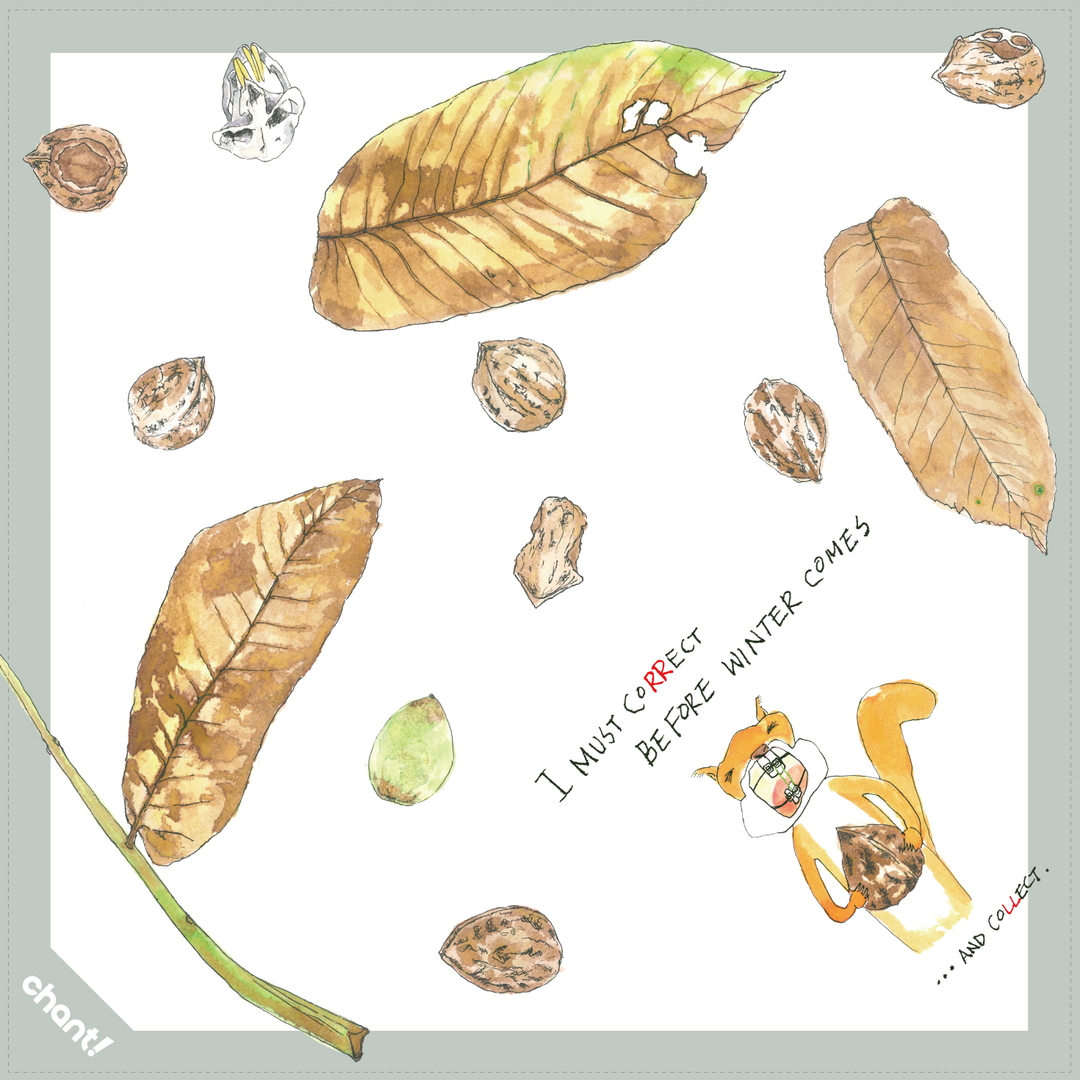 correct 歯科矯正とcollect くるみ集め という意味で、「冬が来る前に治さなくちゃ、、、集めなくちゃ。」とリスが言っています。