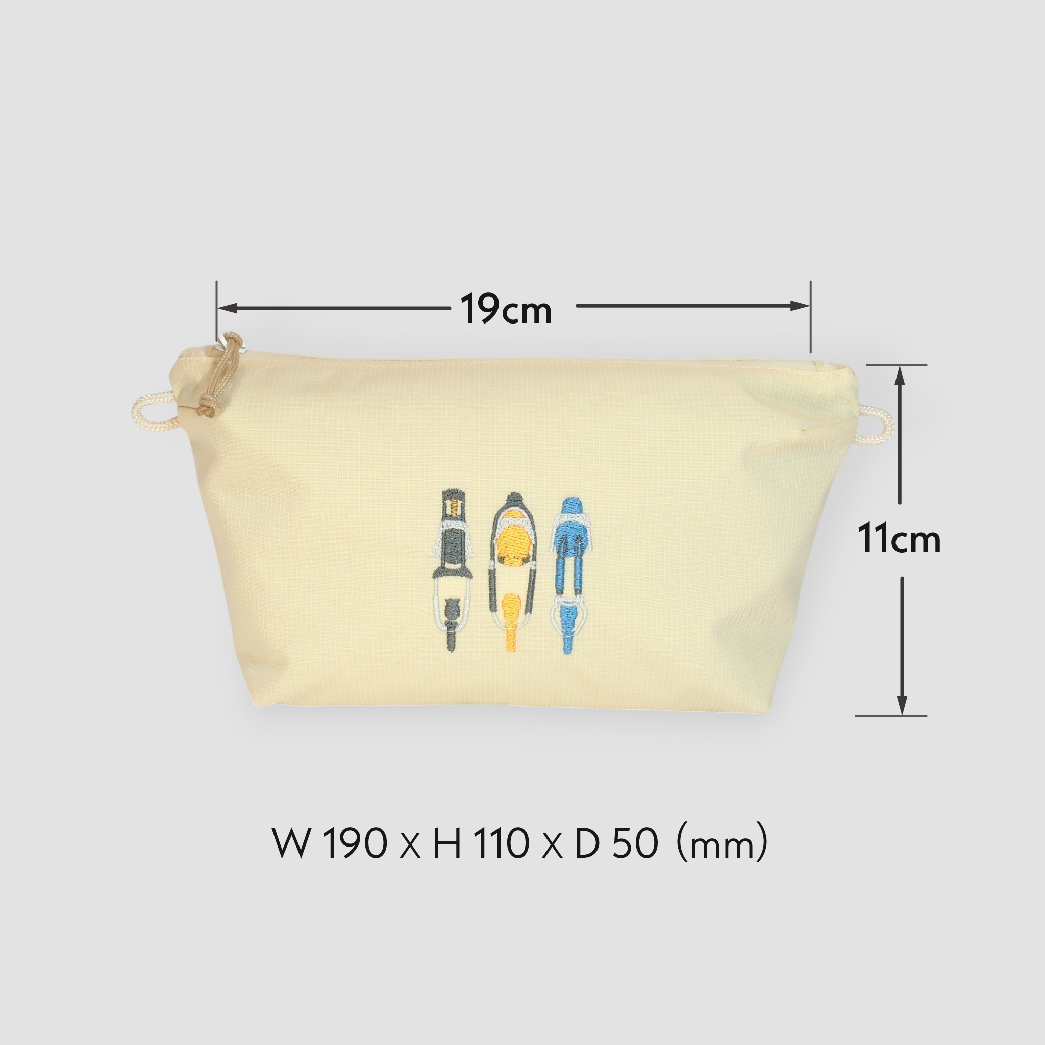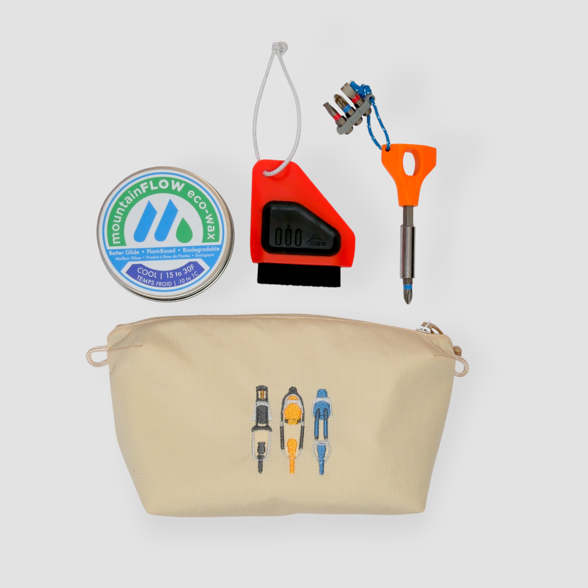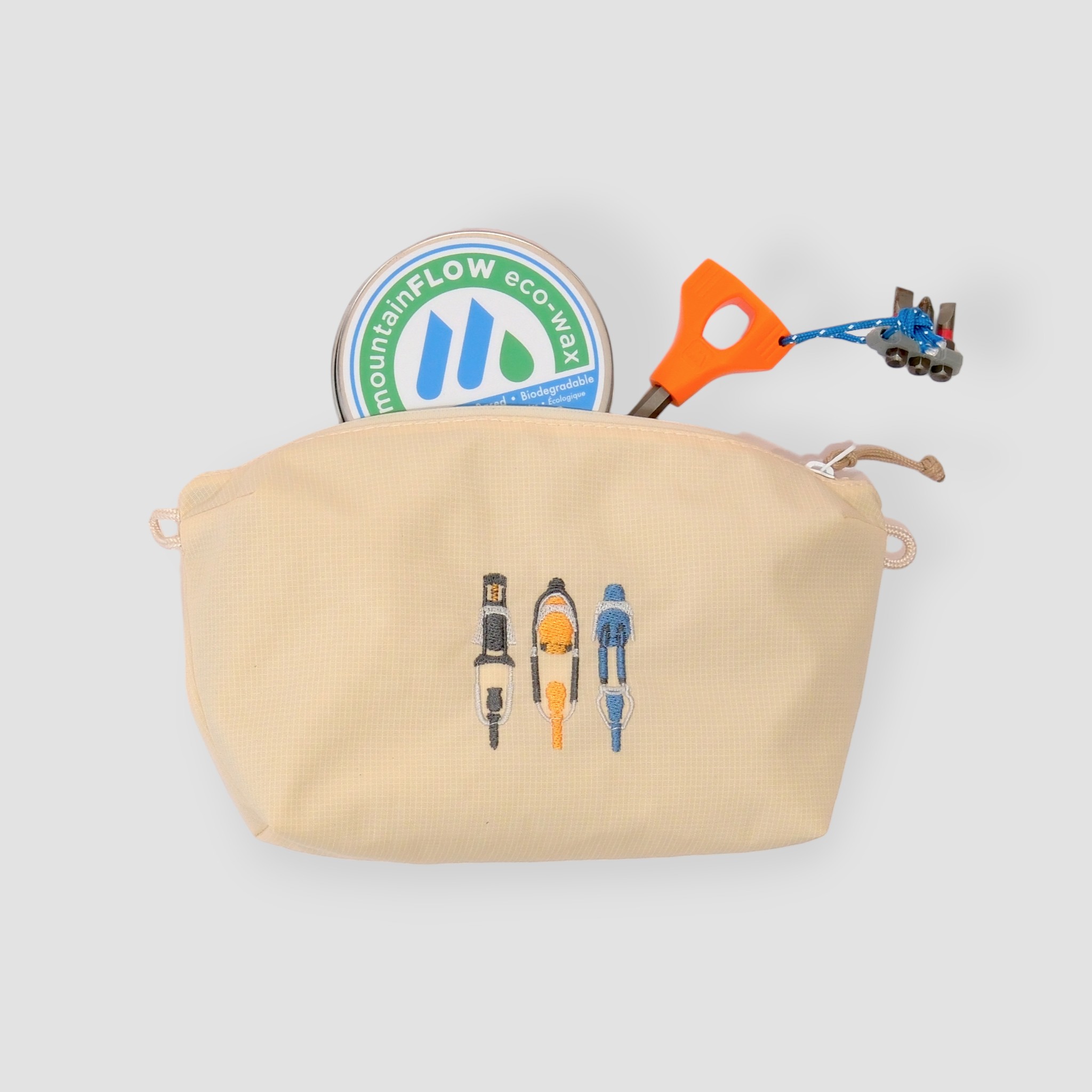スキーツアーに必要なワックスなどの小物入れや、ファーストエイドキット、モバイルバッテリーや充電ケーブルのポーチとして、多用途に使えるポーチです。