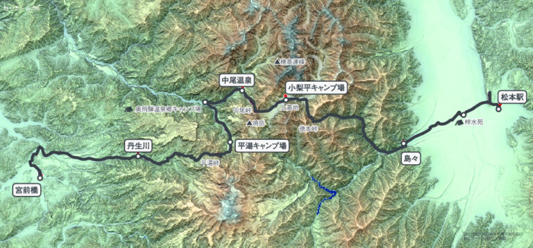 途中の梓水苑という宿泊施設では、キャンプサイトのほか立ち寄り入浴もある。